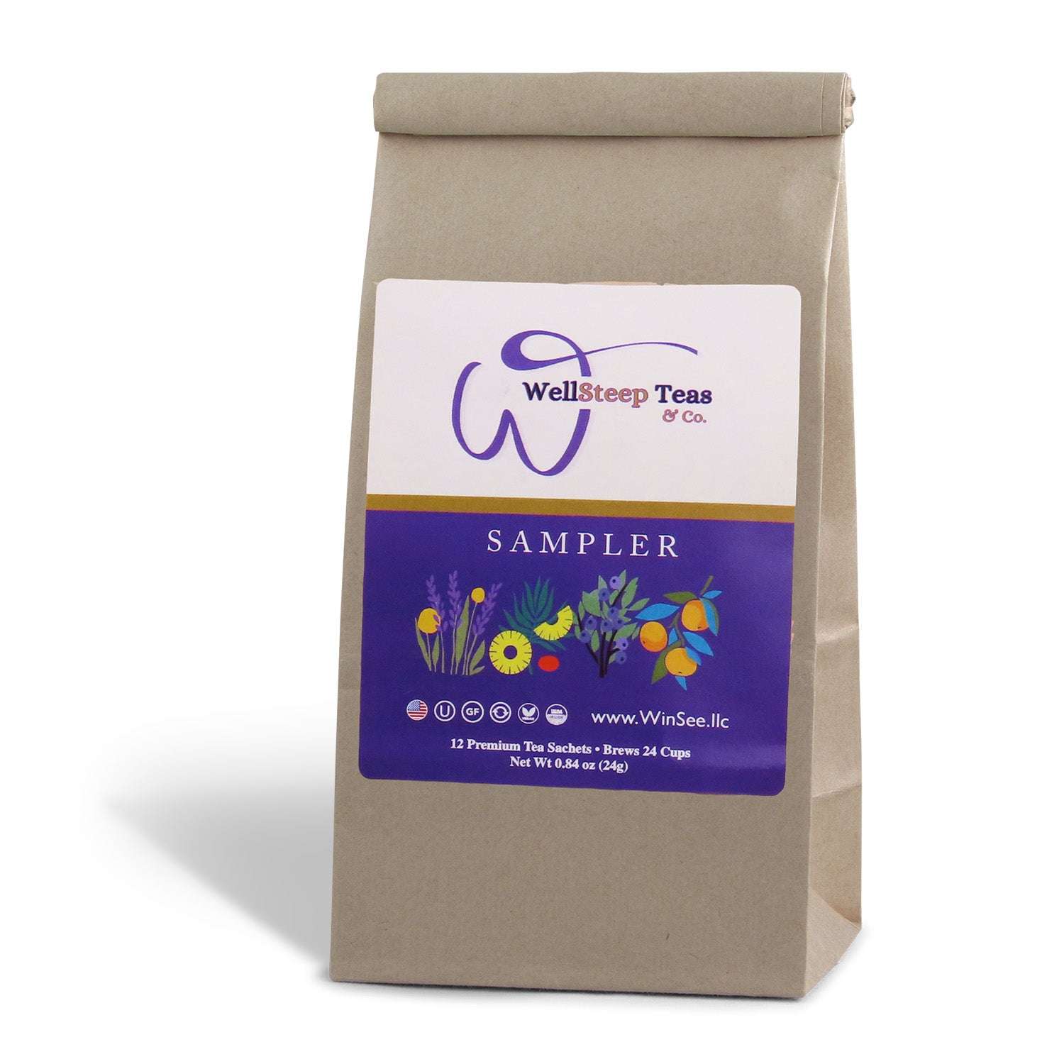 Buy our sample bag which contains each of our tea flavors, plus two extras.